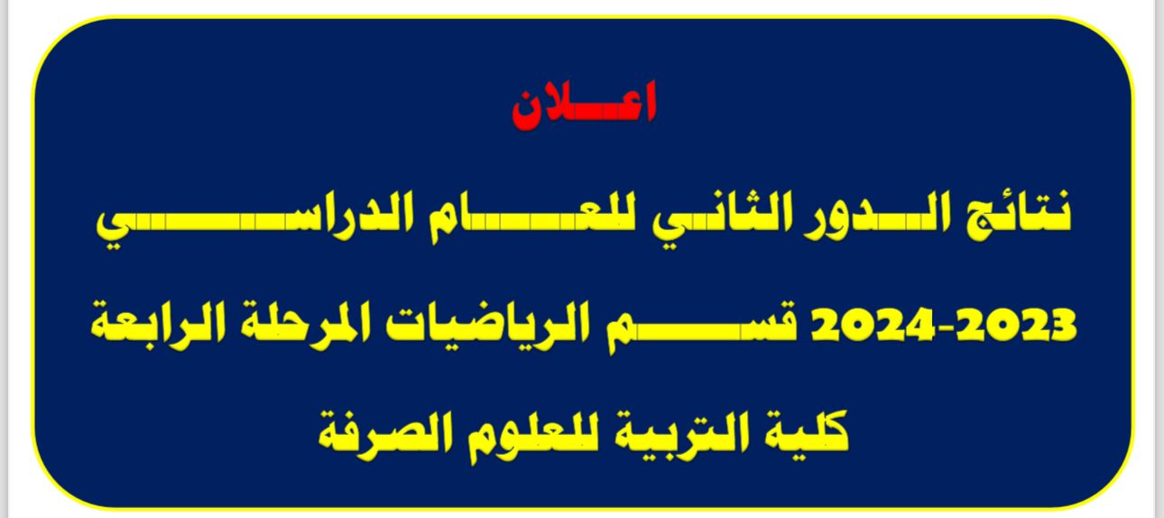 اعلان نتائج قسم الرياضيات الدور الثاني المرحلة الرابعة للعام الدراسي 2023-2024