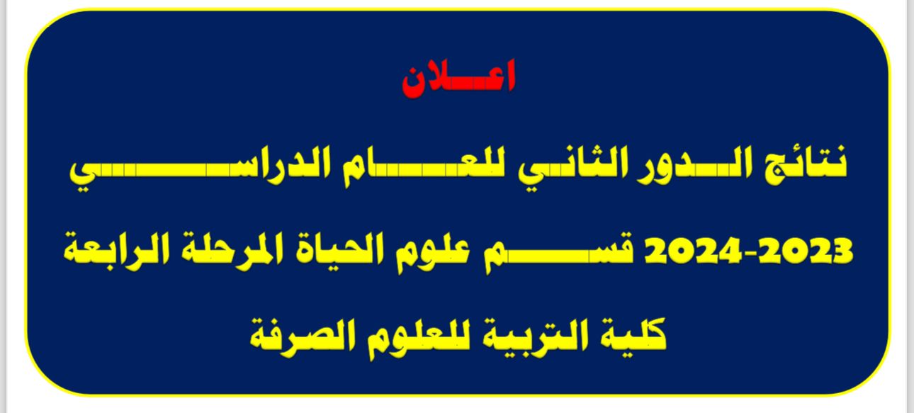 لمشاهدة نتائج قسم علوم الحياة المرحلة الرابعة اضغط هنا