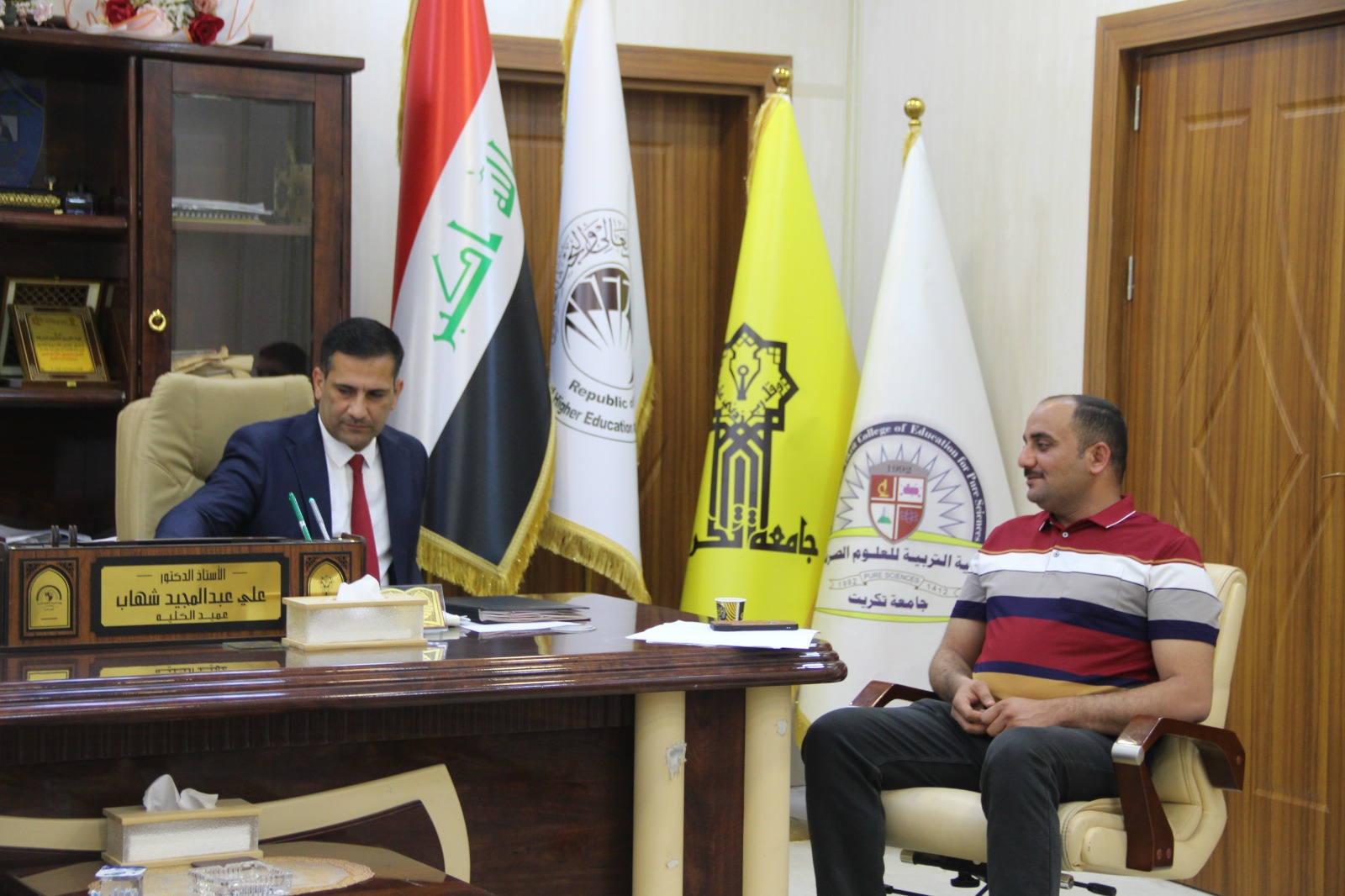استقبل الأستاذ الدكتور علي عبد المجيد شهاب عميد الكلية مدير الأقسام الداخلية الأستاذ المساعد الدكتور عمر صالح حسن و الوفد المرافق له في مكتبه صباح اليوم الاثنين الموافق 3-6-2024.
