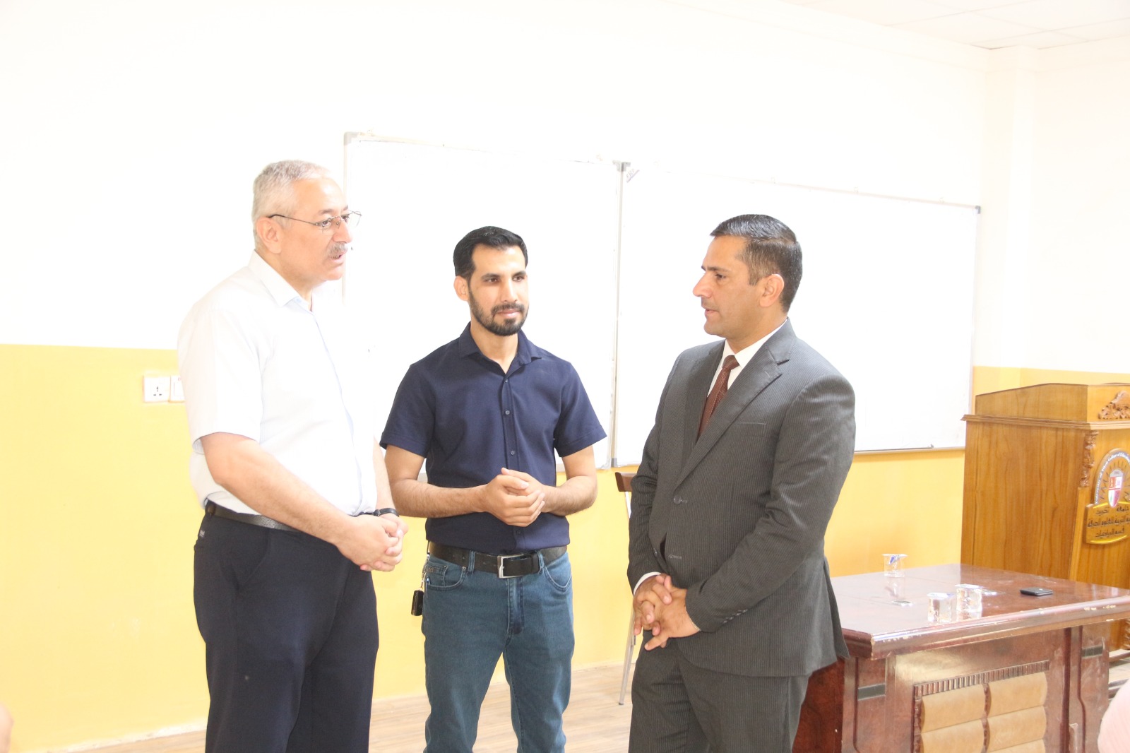 تفقد الأستاذ الدكتور علي عبد المجيد شهاب عميد الكلية برفقة الأستاذ الدكتور ميلاد عدنان مزهر معاون العميد للشؤون الإدارية القاعات الامتحانية ،حيث سعت عمادة الكلية ممثلة بالسيد العميد الأستاذ الدكتور علي عبد المجيد شهاب على توفير كافة مستلزمات نجاح الامتحانات بالتزامن مع استمرار الامتحانات النهائية للدراسات الأولية حيث جرت الإمتحانات بإنسيابية عالية فضلاً عن تأمين أفضل الخدمات المريحة والأجواء الهادئة لطلبتنا الأعزاء راجين لهم النجاح والتفوق.