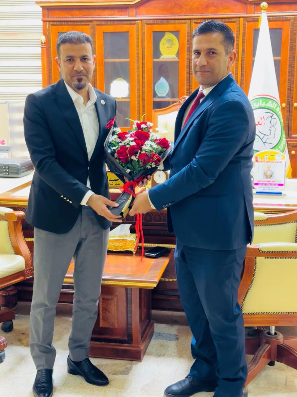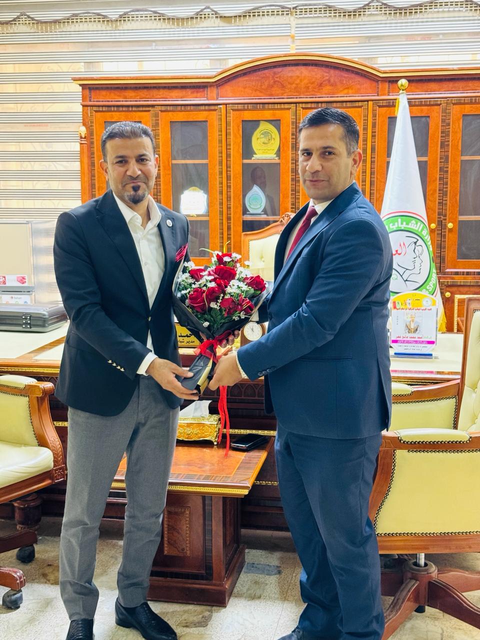 عميد الكلية الأستاذ الدكتور علي عبد المجيد شهاب يزور مديرية الشباب والرياضة ويقدم التهاني والتبريكات لرئيسها