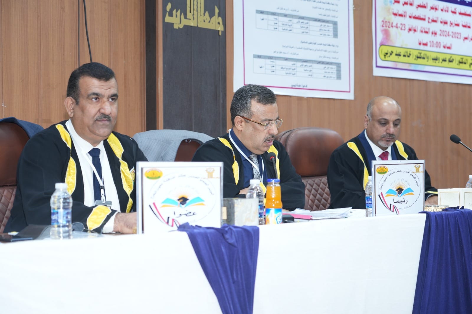 الأستاذ الدكتور علي عبد المجيد شهاب عميد الكلية يحضر المؤتمر العلمي الخامس عشر لمناقشة مشاريع بحوث التخرج للتخصصات الإنسانية