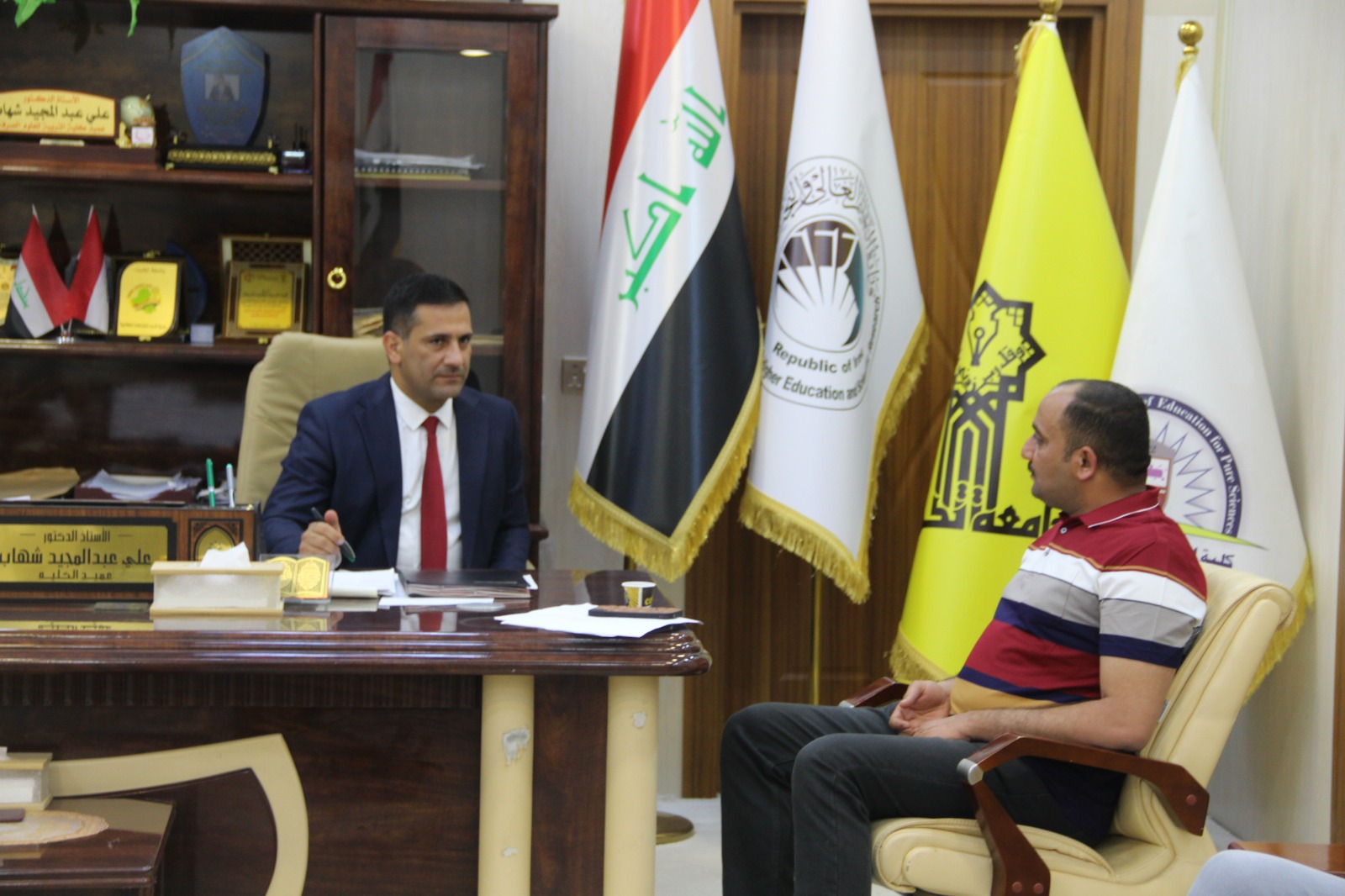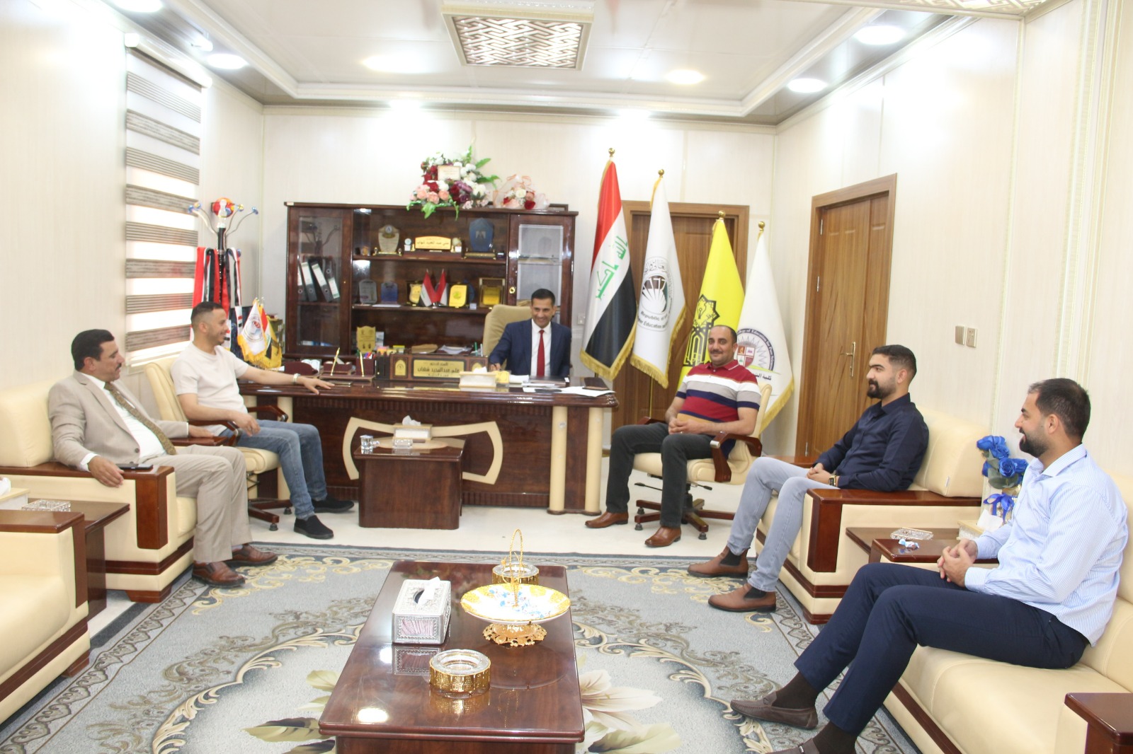 استقبل الأستاذ الدكتور علي عبد المجيد شهاب عميد الكلية مدير الأقسام الداخلية الأستاذ المساعد الدكتور عمر صالح حسن و الوفد المرافق له في مكتبه صباح اليوم الاثنين الموافق 3-6-2024.