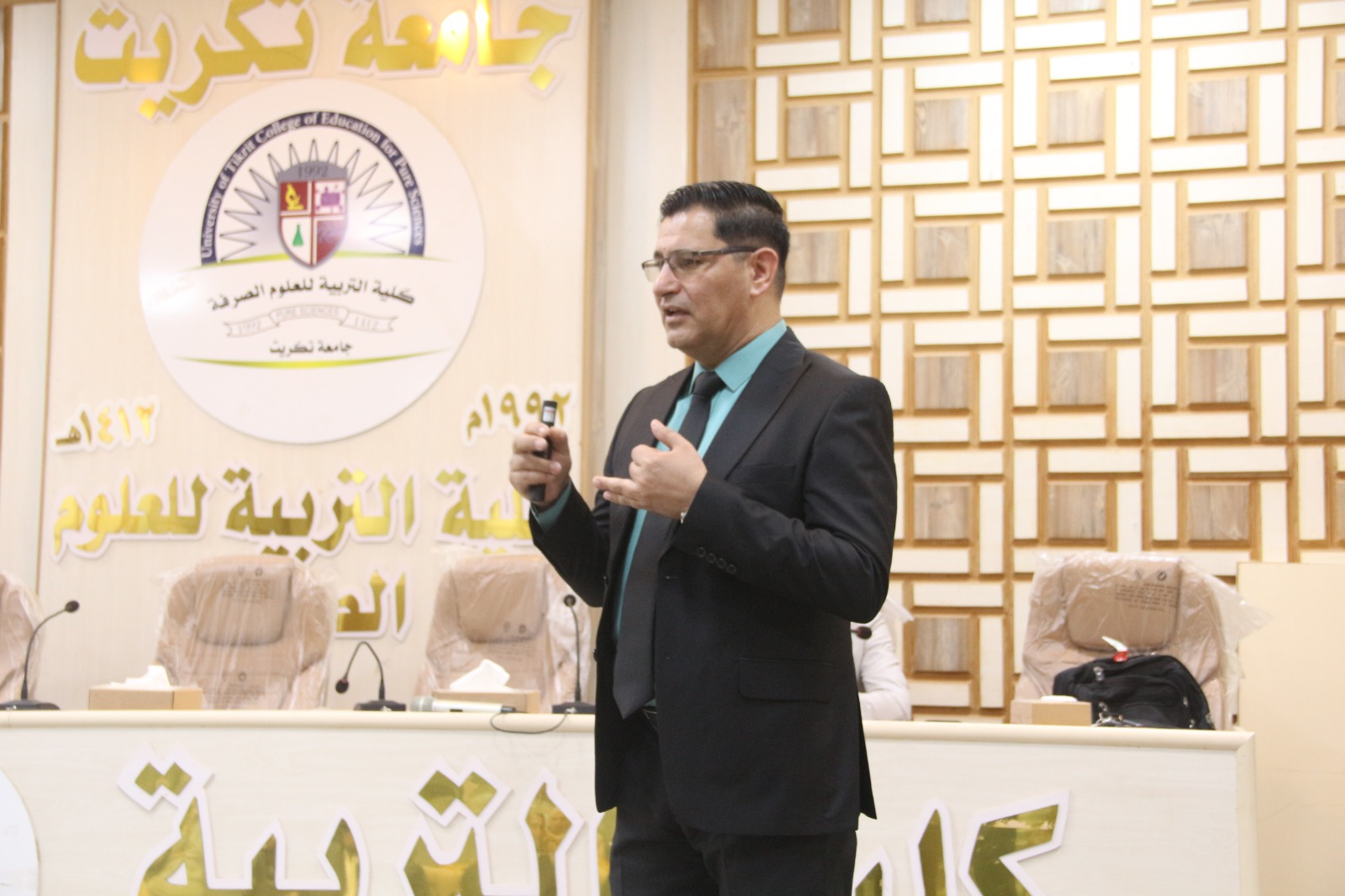 برعاية السيد عميد كلية التربية للعلوم الصرفة الاستاذ الدكتور علي عبد المجيد شهاب، اقام قسم علوم الحياة وبالتعاون مع التعليم المستمر في جامعة تكريت ورشة عمل تدريبية في رحاب قاعة جابر بن حيان حاضر فيها الاستاذ الدكتور انس ياسين حياوي التدريسي في قسم علوم الحياة محاضرة علمية وعملية غنية بالمعلومات تناولت موضوع "الية رفع الأبحاث العلمية على نظام ادارة مجلات دار النشر Elsevier"، بحضور الأستاذ المساعد الدكتور غسان حمد عبد الله عميد كلية هندسة العمليات النفطية وعدد من تدريسي الكلية